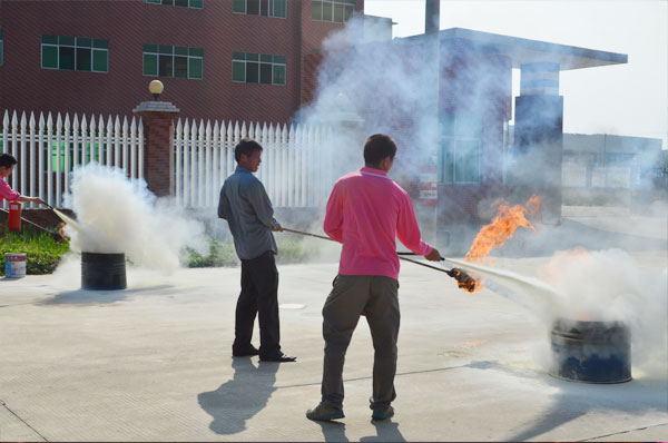 模擬火源現(xiàn)場(chǎng),進(jìn)行滅火演練,員工嚴(yán)格按照操作流程,標(biāo)準(zhǔn)、快速得控制火源